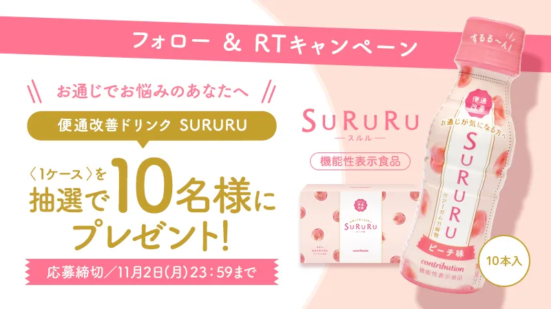 【便通改善ドリンク SURURU】Twitterフォロー&リツイートキャンペーン開催中!